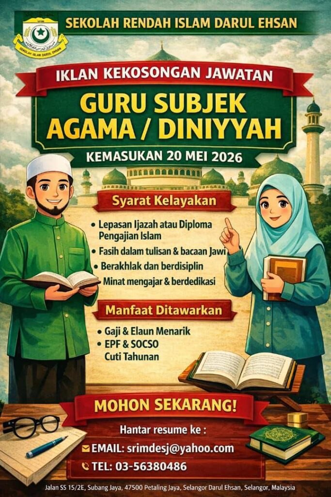 ๐ข IKLAN KEKOSONGAN JAWATAN Sekolah Rendah Islam Darul Ehsan mempelawa calon yang berkelayakan dan berminat…