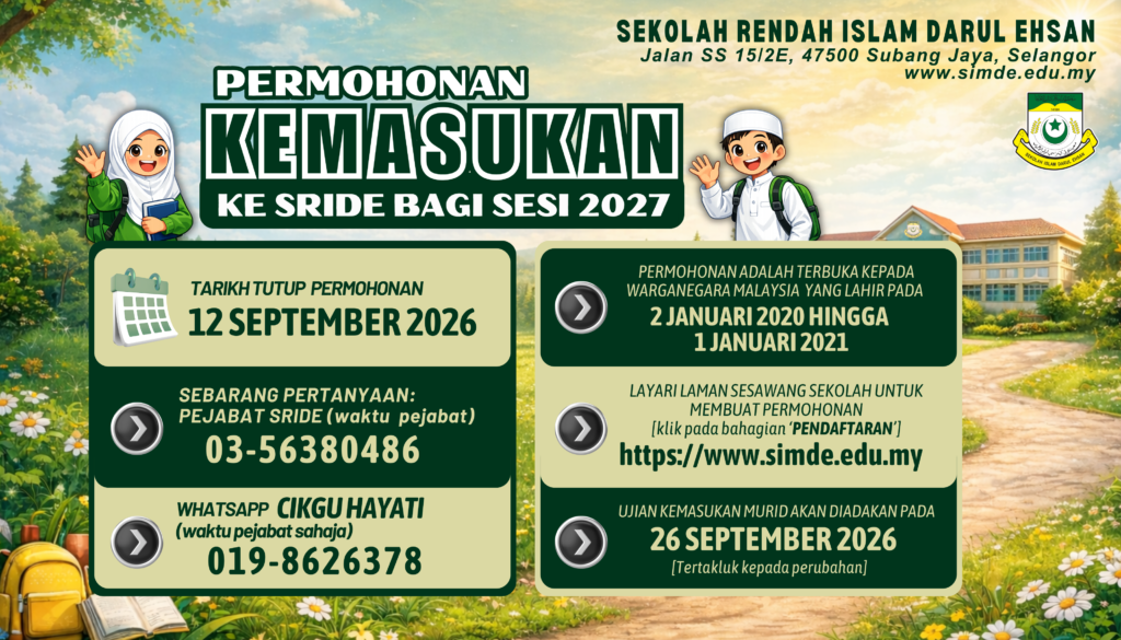 Assalamuโalaikum warahmatullahi wabarakatuh. Sukacita dimaklumkan bahawa permohonan kemasukan ke SRIDE bagi tahun 2026 kini dibuka….
